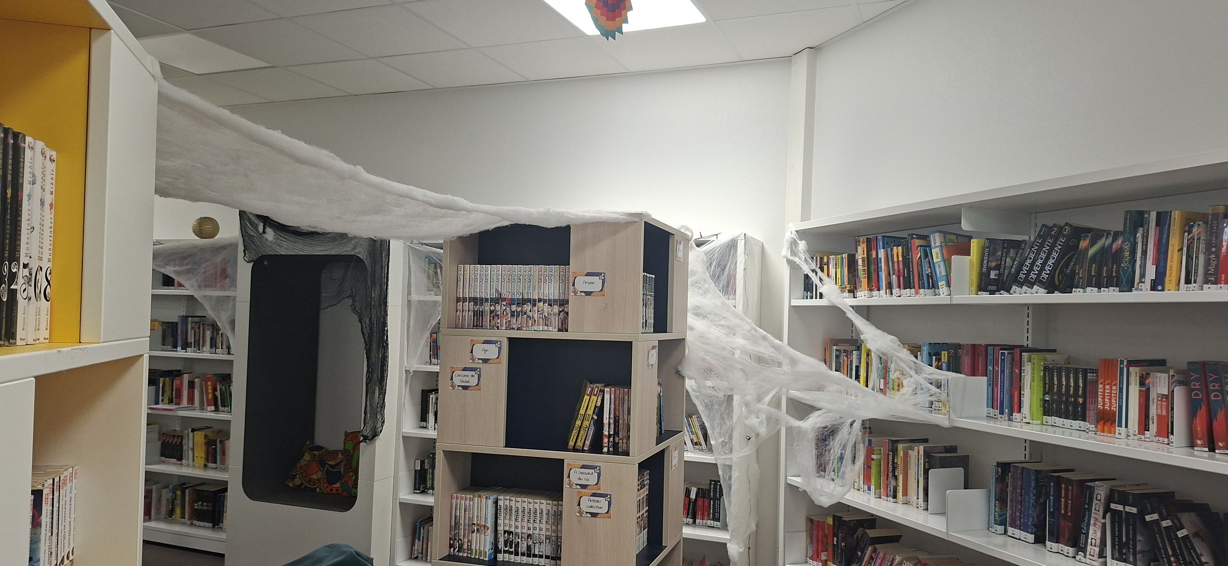 Du 13 au 17 octobre 2025, les ambassadeurs Culture du collège ont organisé une semaine spéciale sur le thème de la peur. À cette occasion, le CDI s’est transformé en un espace mystérieux et décoré aux couleurs d’Halloween, plongeant les élèves dans une ambiance propice aux frissons et à l’imagination.